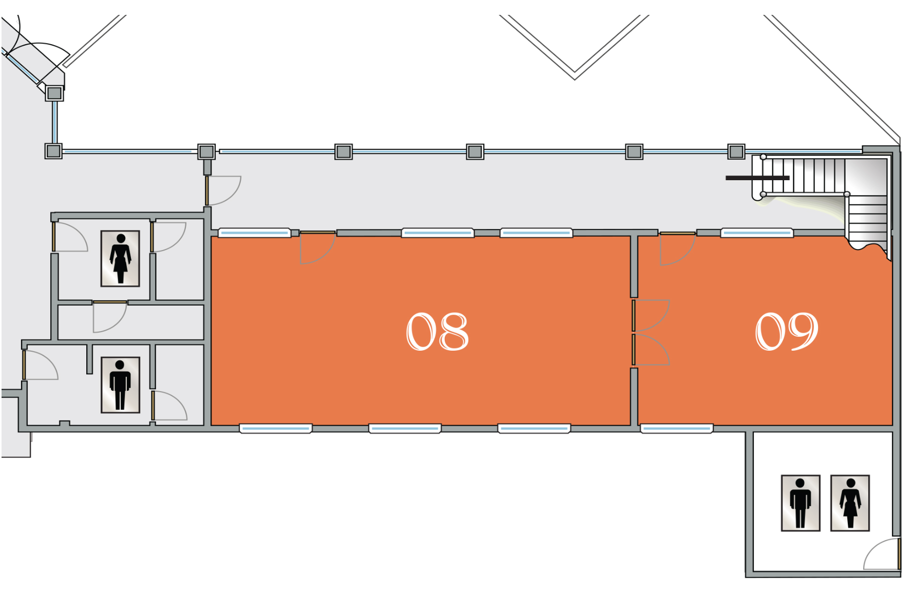 - 7 internal and external breakout areas